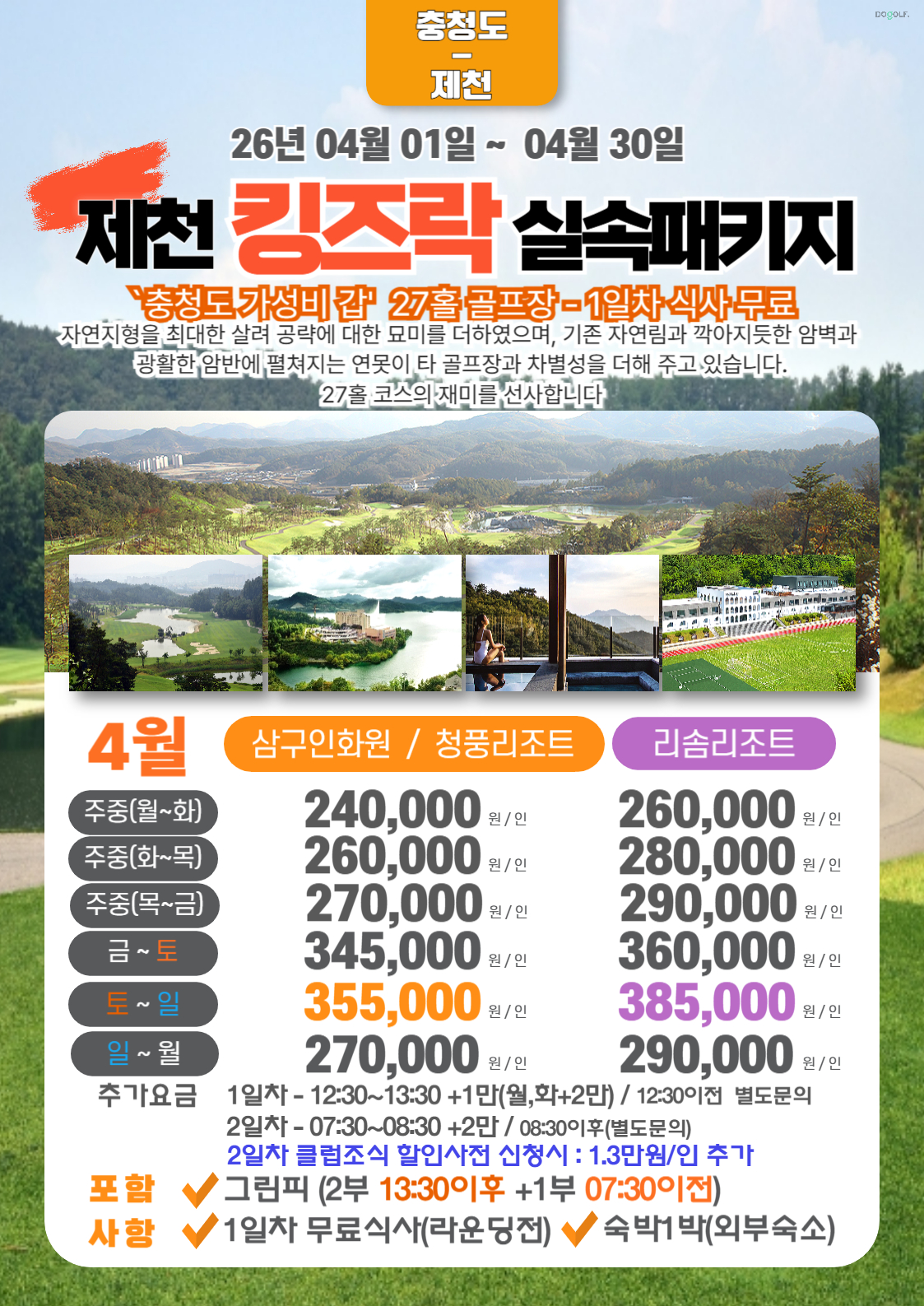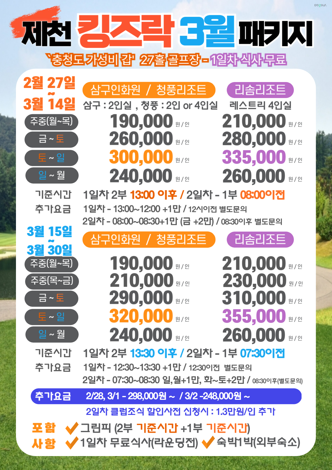 📌국내 골프장 패키지요금은 1달~2달전 요금이 공지 및 요금업데이트 됩니다.